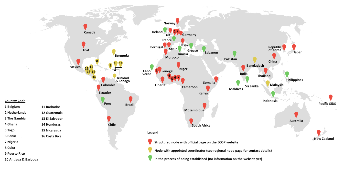 The ECOP Programme is growing. Our Regional and National Nodes are helping expand and integrate our network on a local to global scale. Click on the map below to find your Regional and National Node and reach out to our ECOP Programme coordinators.